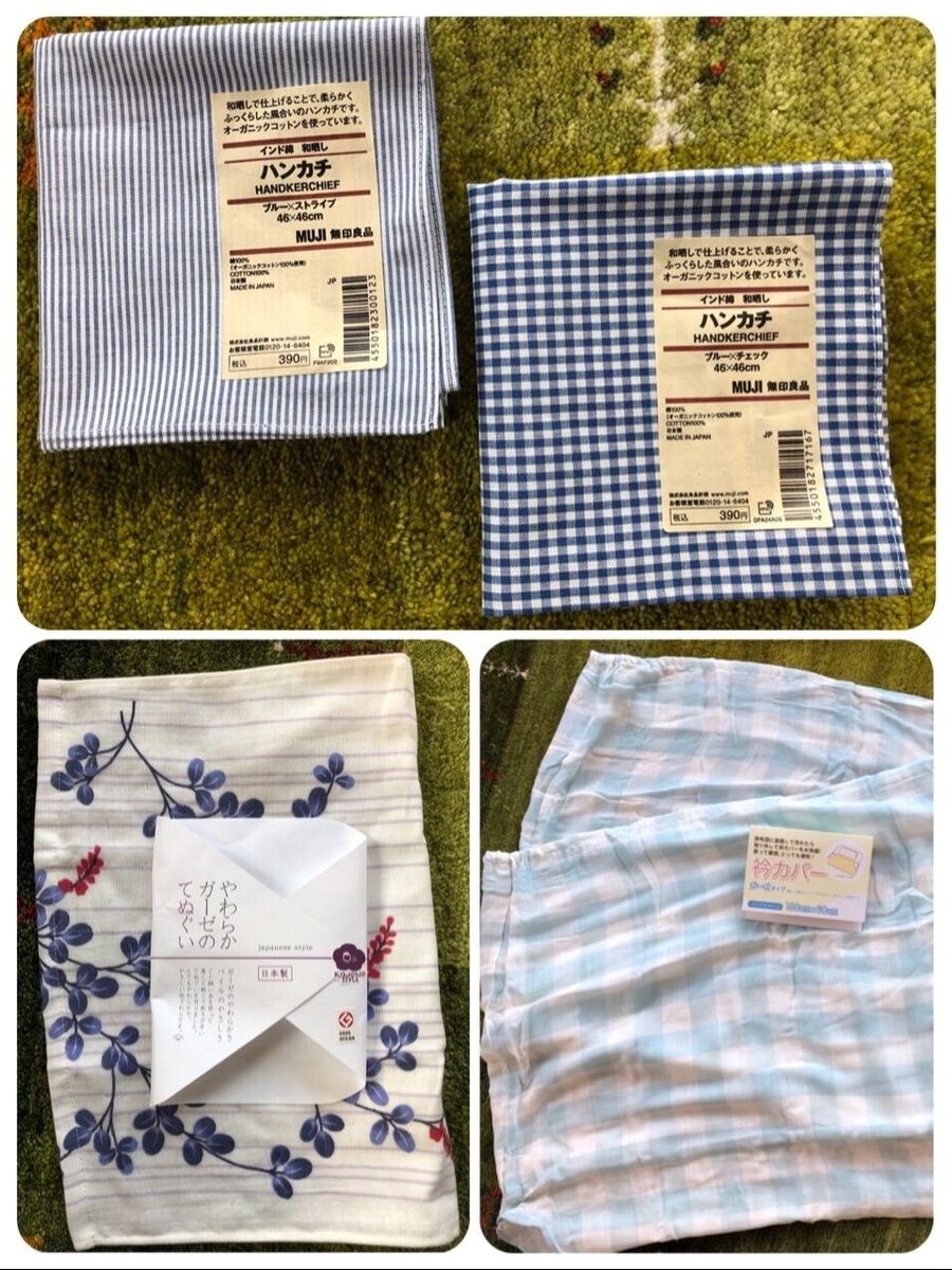 100均の手ぬぐい1枚で 移動ポケットとマスクがこんなにもできた 一年の半分は梅干しのこと