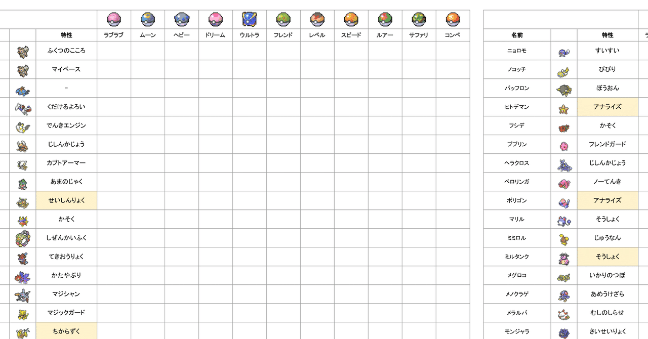 ポケモン スプレッド シート
