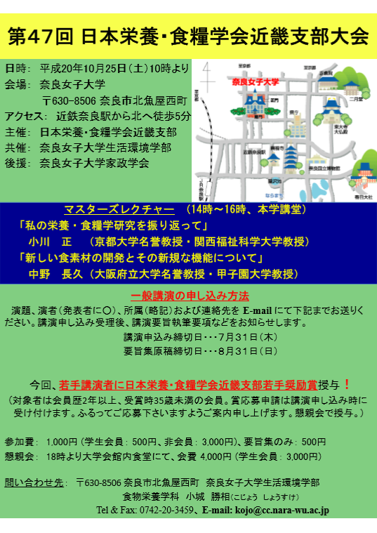 平成年度 日本栄養 食糧学会近畿支部大会 Of 奈良女子大学食物栄養学科