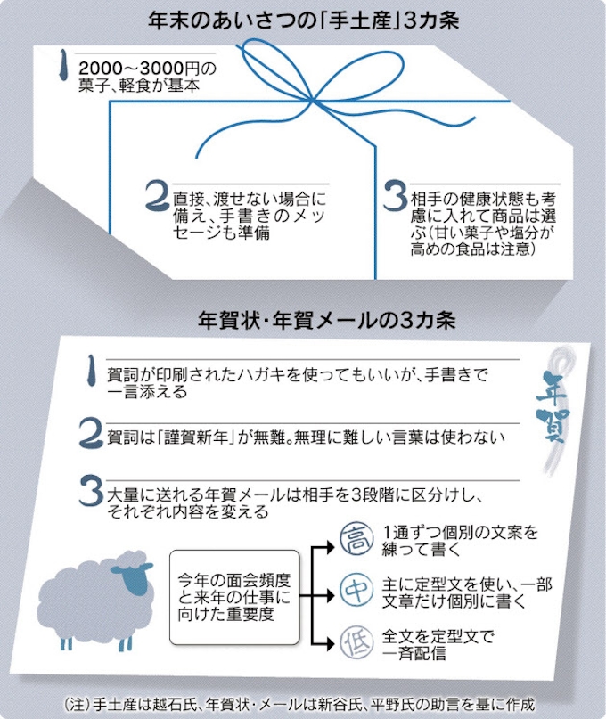 取引先に響くあいさつ 年の瀬の作法 手土産 消え物 で健康も配慮 年賀状 謹賀新年 手書き添え 日本経済新聞